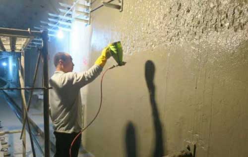 3、渗漏位置喷涂YYA防水抗渗浆料1遍,保证大面积不漏水